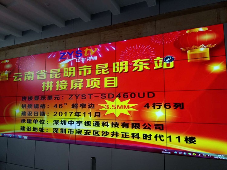 云南昆明市昆明東站選擇中宇視通46寸*3.5拼縫拼接屏項(xiàng)目。