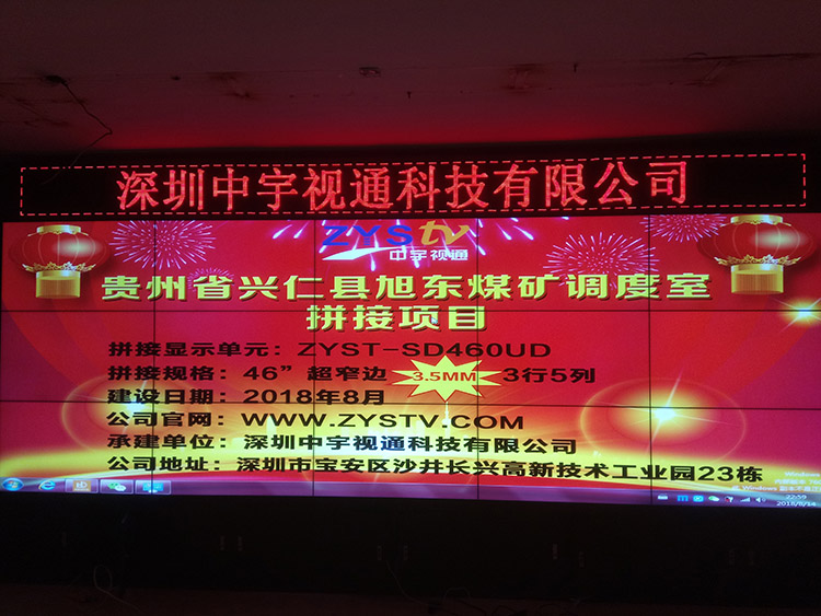 貴州省興仁縣旭東煤礦調(diào)度室46寸拼接屏項(xiàng)目采用中宇視通科技大屏液晶拼接方案,項(xiàng)目安裝調(diào)試完成并順利驗(yàn)收。