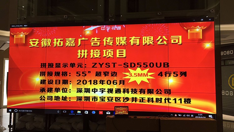 安徽拓嘉廣告?zhèn)髅?5寸拼縫拼接屏項(xiàng)目