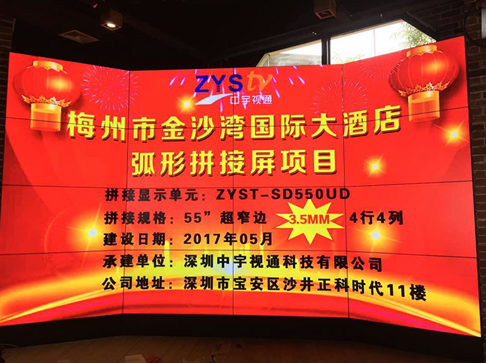 梅州金沙灣國際大酒店55寸3.5mm拼縫4行4列弧形液晶拼接屏完美驗(yàn)收