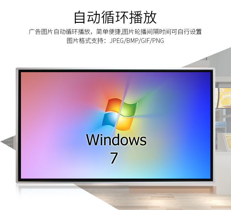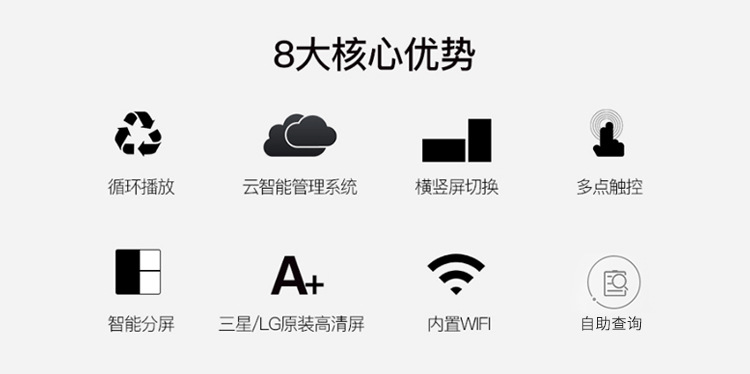 工業(yè)級電源系統(tǒng),自帶恒溫散熱系統(tǒng),可滿足24*7連續(xù)不間斷開機播放。