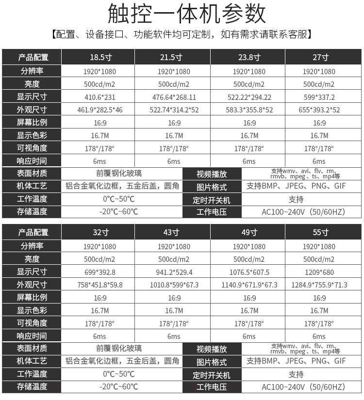 內(nèi)置紅外觸摸屏,采用最新高精度觸摸技術(shù)、獨特電路設(shè)計、智能判定和紅外抗干擾等先進技術(shù),穩(wěn)定性強、響應(yīng)靈敏;