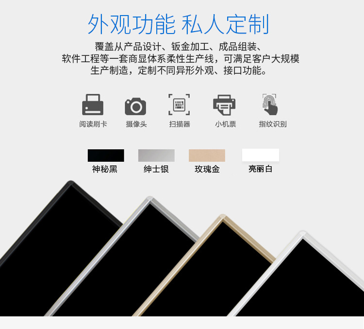 外型時尚,仿蘋果式外觀,銀色鋁合金邊框設(shè)計,全金屬外殼,整機美觀、大方、高檔;