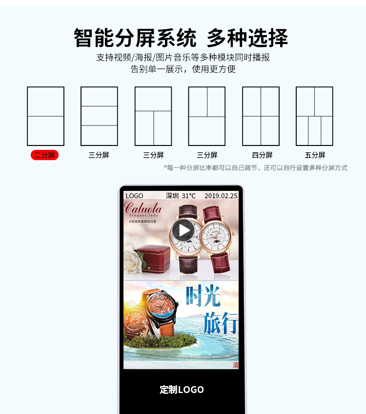 工業(yè)級電源系統(tǒng),自帶恒溫散熱系統(tǒng),可滿足24*7連續(xù)不間斷開機(jī)播放。