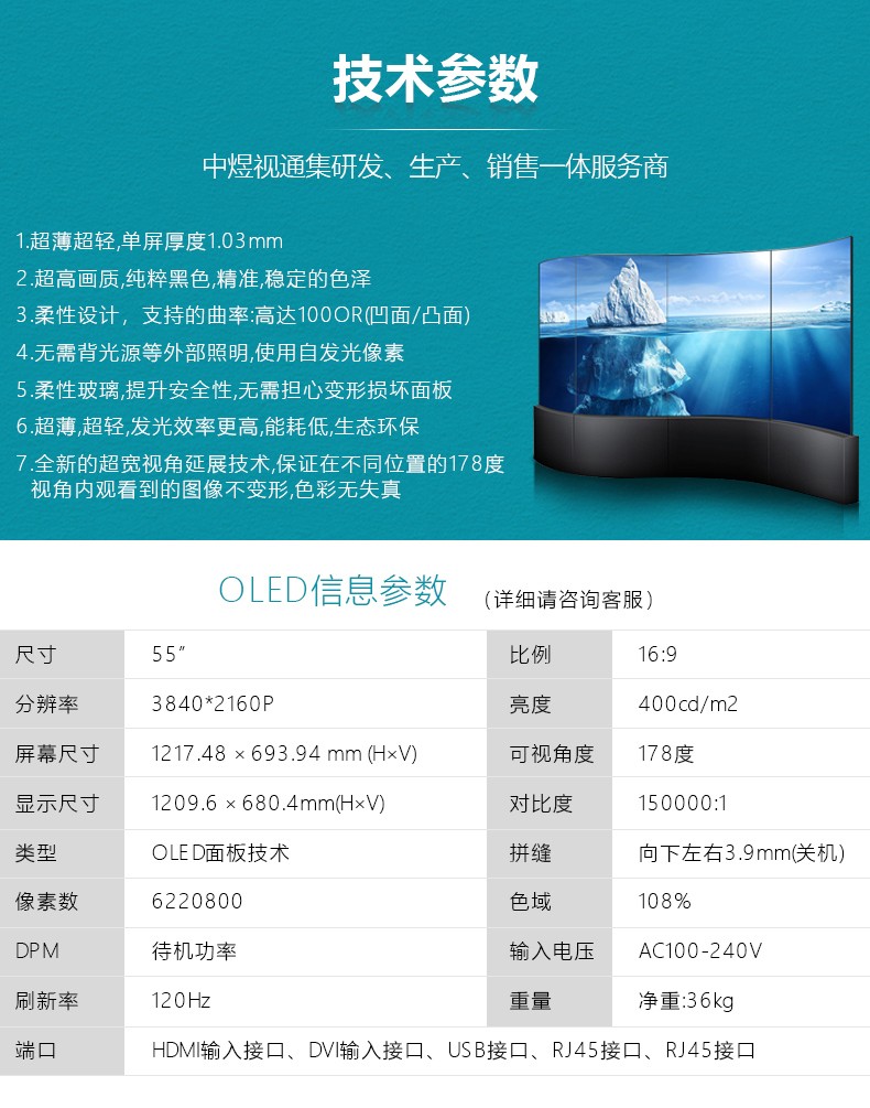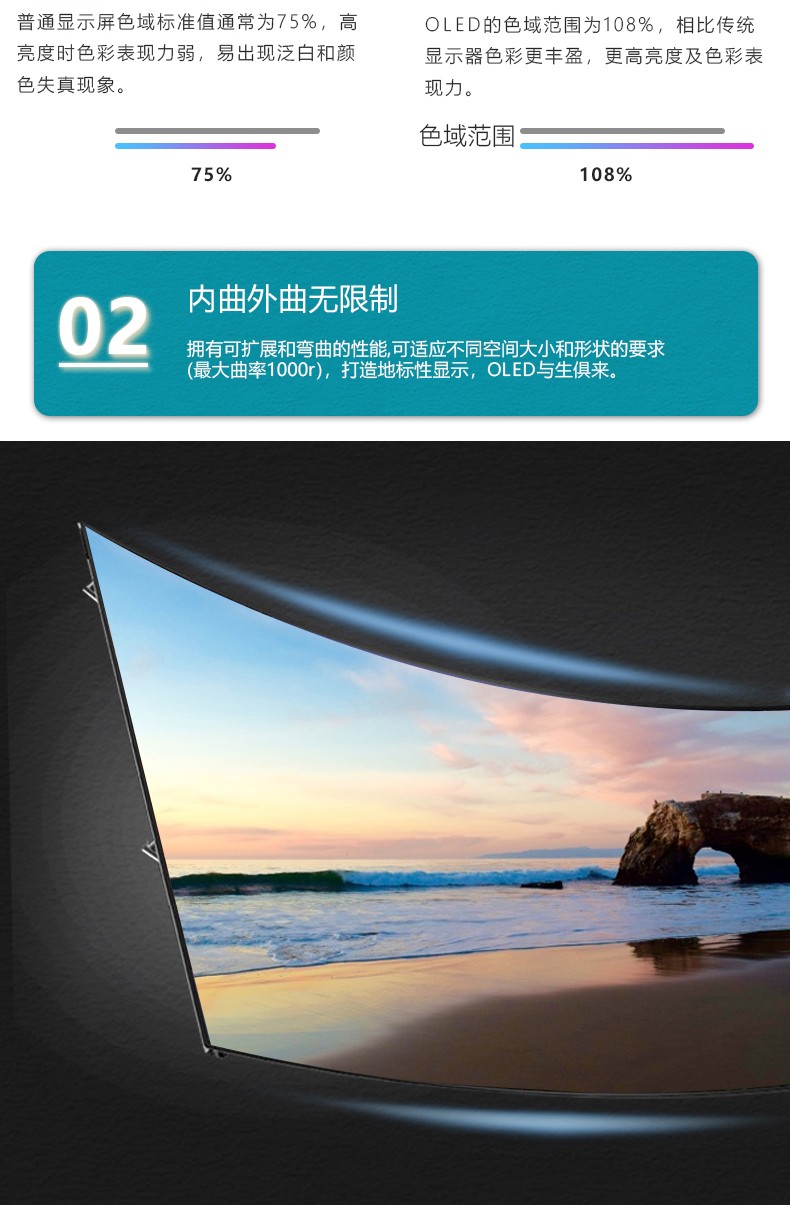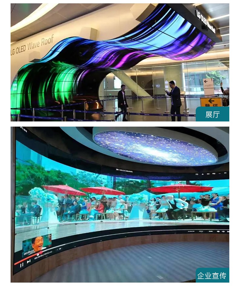 OLED柔性拼接屏是一種采用機(jī)發(fā)光半導(dǎo)體,通過注入載流子和復(fù)合導(dǎo)致發(fā)光的一種技術(shù),是一種在電場驅(qū)動下利用多層有機(jī)薄膜結(jié)構(gòu)產(chǎn)生電致發(fā)光的器件,并且引入了液晶拼接屏可拼接的性能,實(shí)現(xiàn)大屏幕顯示;OLED柔性拼接屏采用最新的OLED顯示技術(shù),面板超輕、超薄,可彎曲,支持弧形、曲面拼接。