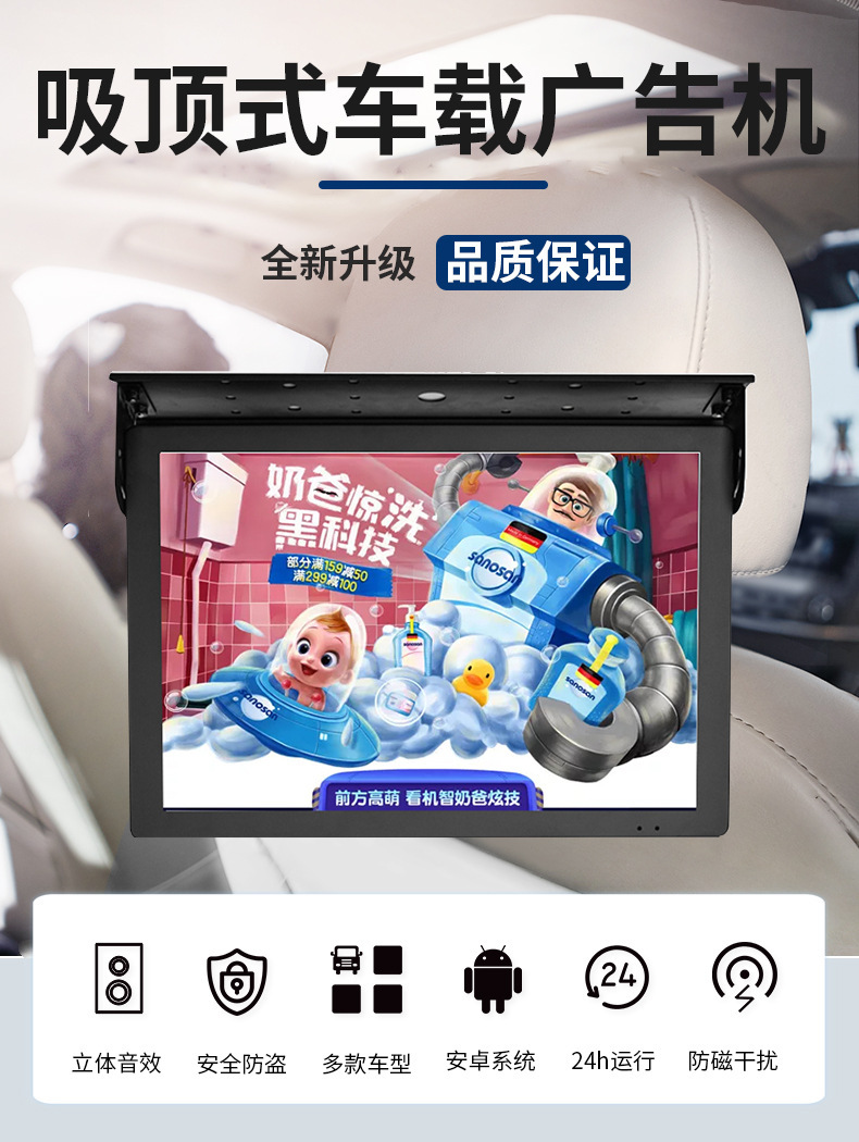 中宇視通是21.5寸車載廣告機(jī)生產(chǎn)廠家,我們提供吸頂車載廣告機(jī)、背掛車載廣告機(jī)、折疊式車載廣告機(jī)多種安裝方式,滿足各種車型,內(nèi)置抗振設(shè)計,減少車載環(huán)境內(nèi)震動對機(jī)器本身的影響,能讓機(jī)器在特殊情況中穩(wěn)定運(yùn)行。